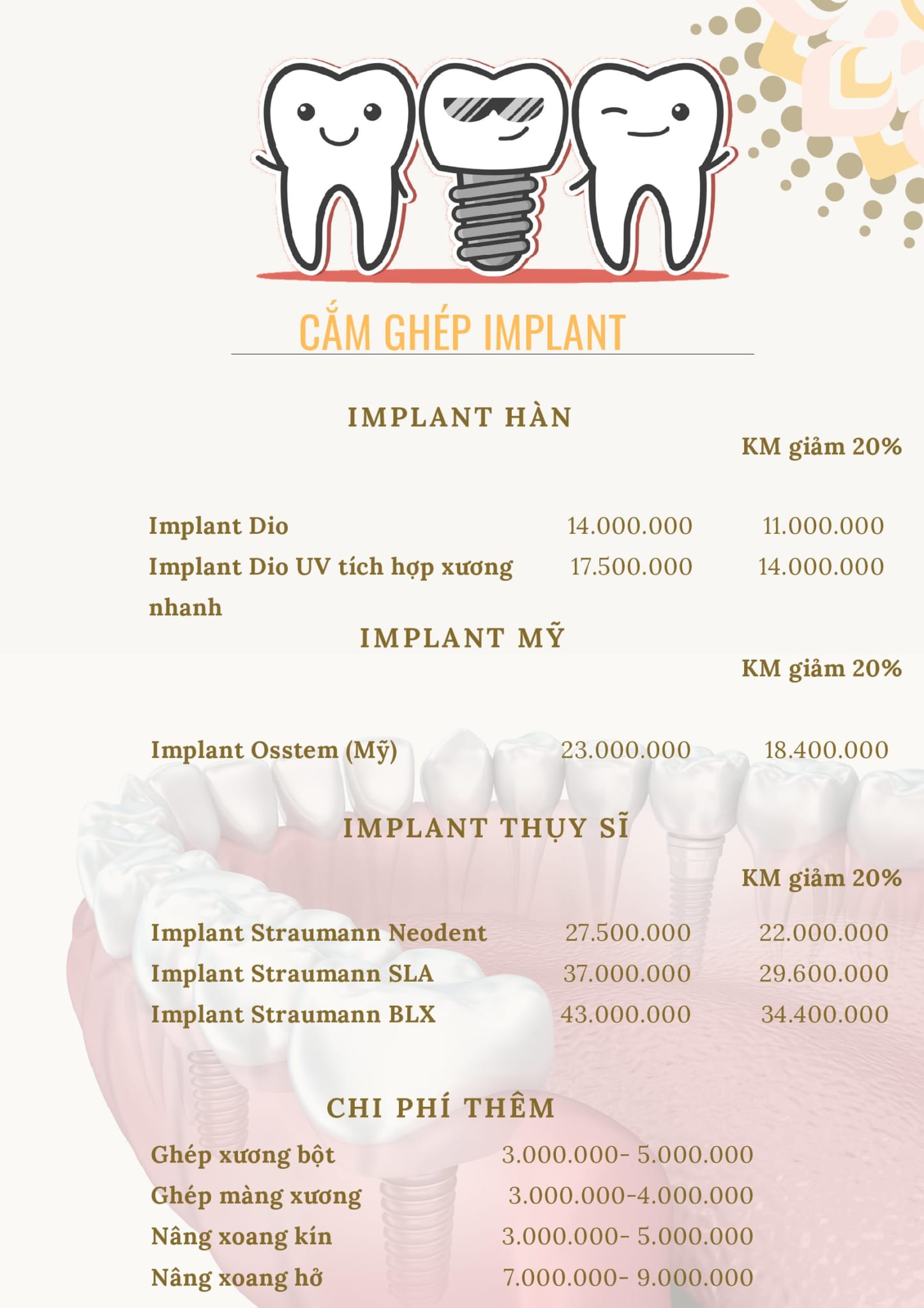 Bảng giá trồng răng implant tại Nha Khoa My Smile năm 2020: